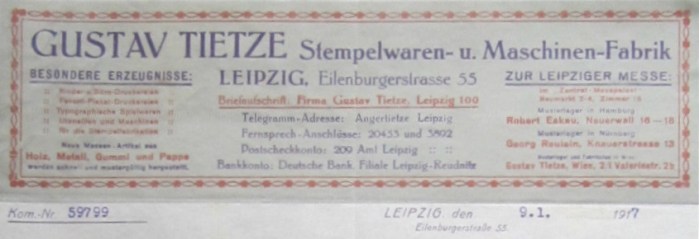 Gustav Tietze Briefkopf 1917 Veröffentlicht 23. Mai 2017 in 845 × 290 in Recherche-Odysee – Gustav Tietze AG – ´EXACT´ Typenrad-Schreibmaschine ← Zurück Weiter →