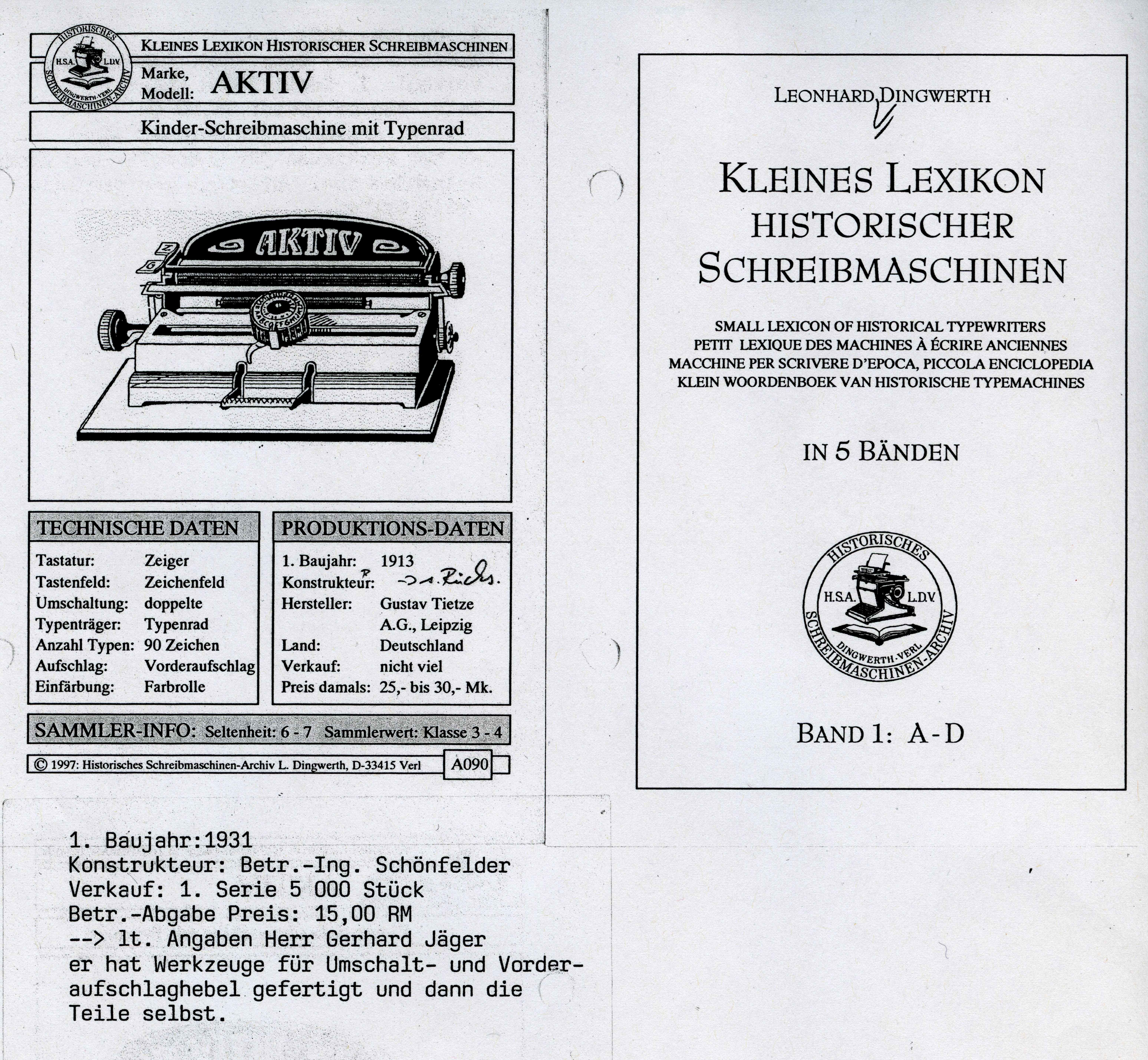 - erste Benennung der „AKTIV“ in Ernst Martin „Die Schreibmaschine und ihre Entwicklungsgeschichte“ von 1934 mit 1931 als erstem Produktionsjahr